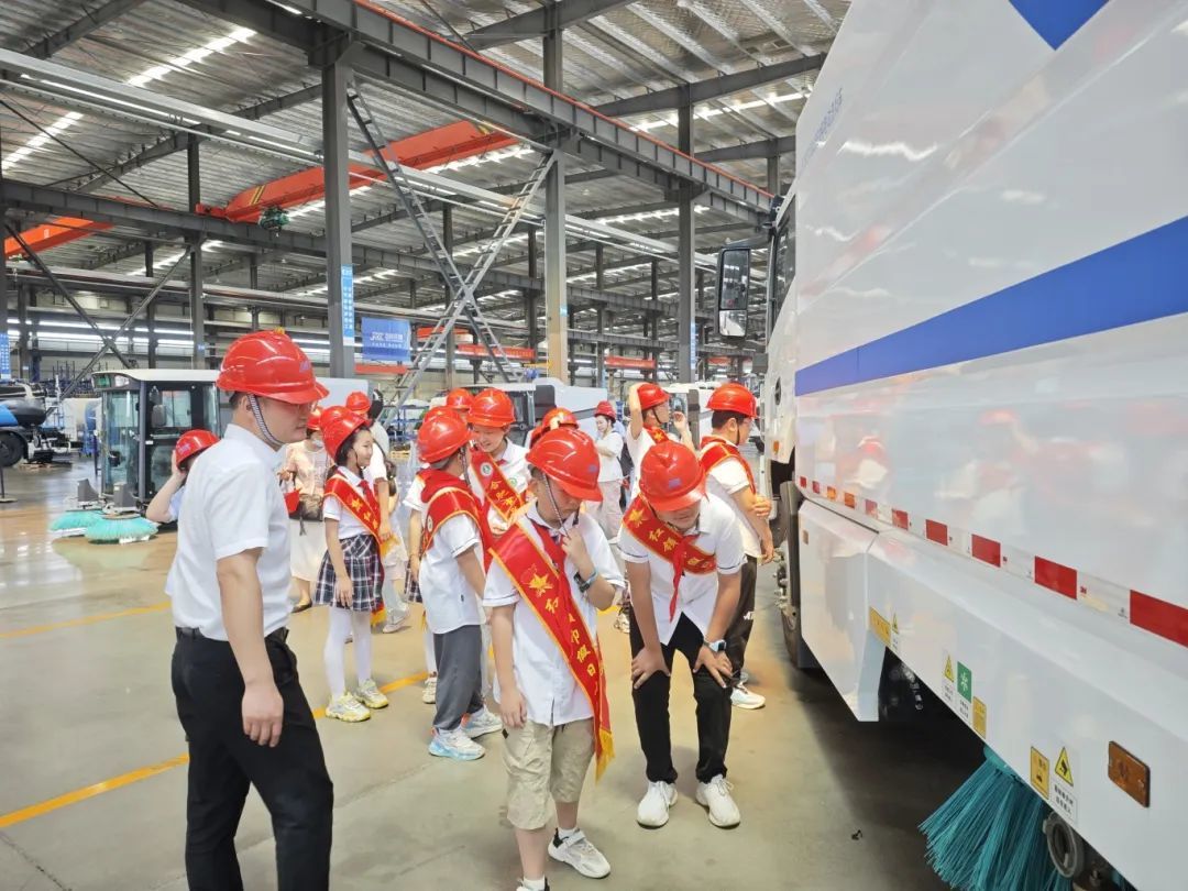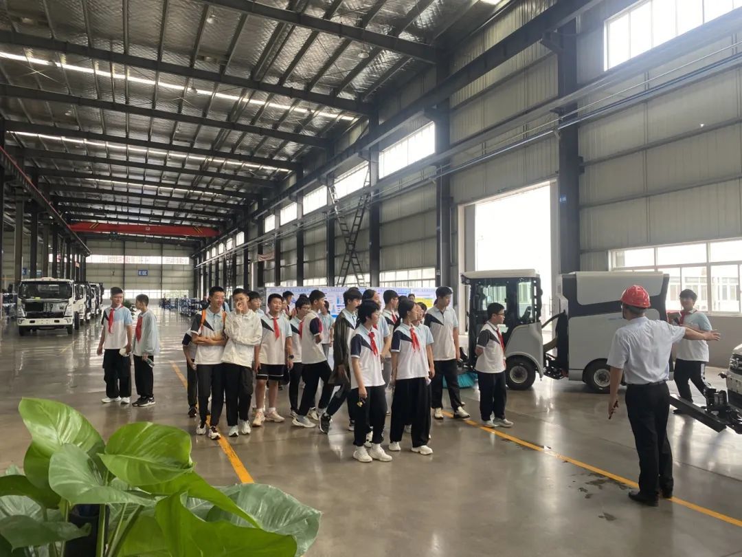 在展廳之旅結束後,同學們來到了勁旅總裝車間,講解員向同學們介紹了公司自主研發生産的新能源系列産品、垃圾壓縮系列産品,并解答了同學們提出的各種問題。